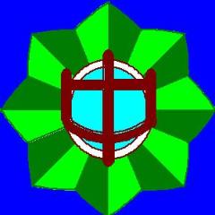 緑に囲まれた学舎に、青春の希望を謳歌しながら、互いに手を取り合い助け合っていく。おおらかに伸び伸びと、しかも、たくましく育ちゆく。このような姿を周囲に八枚の葉を配して表している。また中央に円と中の字を入れ、中学校を象徴し、緑は青葉の喜びを、白は清潔潔白の気品を表している。