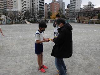 11月に5・6年生を対象に行われたマラソン記録会から、大田区駅伝大会に出場する16名が代表として選ばれました。約1か月、週2回~3回の朝練を続け、力を少しずつ付けてきた子供達。12月13日に全校朝会で壮行会を行い、14日にはPTAより校章が刺繍されたリストバンドをいただきました。ありがとうございます。本番に向けて気持ちが高まってきました。