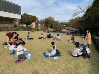 気持ちのいい芝生の上で、楽しいお弁当タイムです