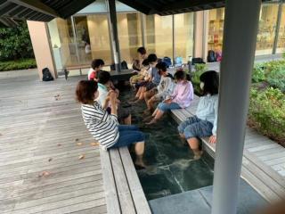 ハイキングで疲れた脚を、宿舎の足湯で癒します