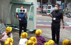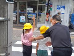 警察の方、交通安全指導員さんのご指導のもと、実際に横断歩道を渡る練習をしました。登下校やお出かけの時に、学んだことを生かして安全に移動してくれることを願っています。