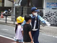 蒲田警察署交通安全課の方と大田区交通安全指導員の方をお招きして、道路を安全に渡る方法について学習しました。