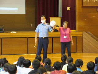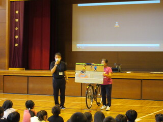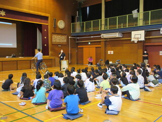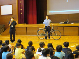 9月8日に自転車交通安全教室を行いました。あいにくの天気でしたが体育館で自転車に乗るときのポイントや危険な場所などをDVDで勉強しました。また、蒲田警察の方からヘルメットの重要さについて話があり、子供たちは真剣に聞いていました。