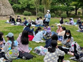 お弁当は竪穴住居に囲まれた広場にて縄文人気分で食べました。