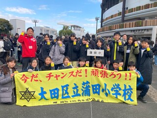 先日行われた大田区小学生駅伝大会に本校の児童が元気いっぱいに出場しました。こどもたちはこれまでの練習の成果を発揮し、前年度よりもタイムと順位を更新しました。1人ひとりが全力を尽くし、仲間と声を掛け合いながらたすきを渡す姿は輝いていました。応援してくださった保護者の皆様のおかげで、こどもたちはより力強い走りができました。本当にありがとうございました。今後ともこどもたちの成長を温かく見守り、応援をよろしくお願いいたします。