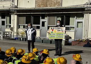 2月3日に下校指導がありました。交通指導員の方に来ていただき、話をしていただきました。1学期に学習した、道路の歩き方について確認しました。また、歩道のない道路の歩き方や横断歩道の渡り方、曲がり角の歩き方などについて教えていただきました。お話の後は、交通指導員の方の見守りのもと、安全に下校することができました。交通指導員の方から、「とてもよくお話を聞き、上手に下校することができましたね。」とお褒めのお言葉をいただきました。これからも道路の歩き方、横断歩道の渡り方などに気を付けて、元気よく登下校をしてほしいです。
