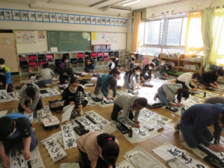 1月6日と7日に校内書き初め会を行いました。子供達は真剣な表情で硬筆、毛筆それぞれの作品を仕上げました。校内では、各学年の書き初めが掲示されています。どの作品も力作ぞろいです。