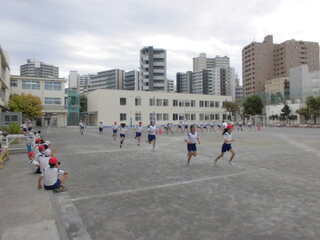 11月7日(火曜)に5、6年生を対象にマラソン記録会を行いました。男子が850m、女子が650mを走りました。一人も途中で諦めることなく、最後まで走っている姿がとても立派でした。記録会のタイムをもとに5年男女各4名(内補欠各1名)、6年男女各4名(内補欠各1名)の合計16名でチームを編成し、12月16日(土曜)に大田スタジアムで行われる大田区小学生駅伝大会に出場します。蒲田小学校の代表として頑張ってほしいです。※補欠選手はロードレースに出場します。