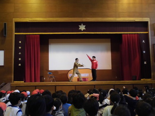 子供たちや教員も巻き込んで、パフォーマンスを披露していただいたり、夢をかなえることについて講演をしていただいたりしました。「どんなときでも好きなことを続けて夢を叶えてください」というケッチさんのメッセージを子供たちは真剣なまなざしで聞いていました。最後には、コミュニケーション講座として、パントマイムが上手にできるコツを教えていただきました。プロのパフォーマーに教えていただいたことは子供たちにとってとても貴重な経験になりました!