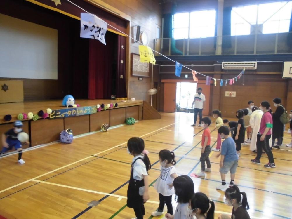 5月14日土曜日にPTA主催の1年生向けの行事がありました。あいにくの悪天候にもかかわらず、多くの児童が参加しました。お菓子の入った入れ物に向かって、力いっぱいボールを投げたり蹴ったりしました。中身のお菓子や小さな星を見付けて、大喜びで集めたり友達と分け合ったりしている姿がとても微笑ましかったです。PTA役員の皆様には、コロナ禍で様々な制限がある中、このような素敵な会を開いていただき、心より感謝を申し上げます。ありがとうございました。