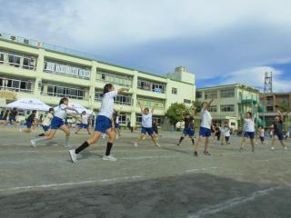 走路を工夫し、直線状の4コースで行い、バトンパス等練習の成果を発揮しました。代表選手の迫力ある走りに盛大な拍手をいただきました。