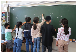 蒲田小学校の算数の学習では、3年生から6年生まで習熟度別学習を行っています。単元ごとに習熟度に応じてコース分けを行い、各コースの担当は、児童一人一人がより習熟できるように工夫しながら授業を行っています。今、3・4年生は前の学年で習ったことをもとに、新しい計算の仕方を学んでいます。