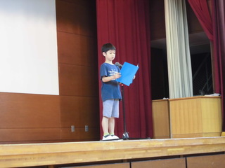児童代表の言葉では、3年生の児童が1学期に頑張ったことを堂々と発表することができました。