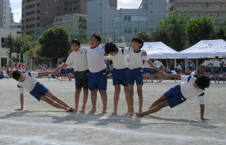 最高学年として、様々な場面で活躍した6年生。自分のプログラムだけではないところでも全行行事の大成功のために一生懸命に働いていました。表現では、組体操を披露しました。たくさんの大技を披露し、1~5年生はとても驚いている様子でした。短距離走では、どのレースも白熱した戦いを繰り広げていました。どんなことでも一生懸命に取り組む6年生の姿はとても輝いていました。
