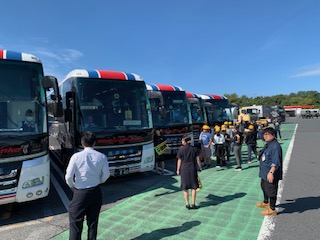 出発式 元気な声で行ってきますの挨拶をして、学校を出発 2泊3日の移動教室が始まります。