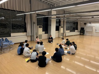 みんなが部屋で就寝準備をしている間に、班長さんが集まって今日の振り返りと明日の確認。