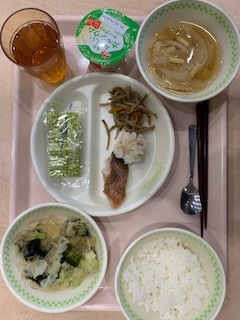 2日目の昼食はおにぎり弁当。 広い体育館でグループごとにいただきます。