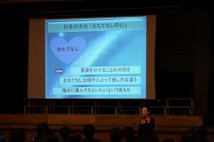 11月下旬に行われる職場体験にむけて、マナー講習会を行いました。講師として元キャビンアテンダントで筑波大学客員教授の江上いずみさんをお迎えして、おもてなしや言葉づかい、服装などについてお話していただきました。最後には、流暢な英語で2年生に向けてメッセージを送ってくださいました。