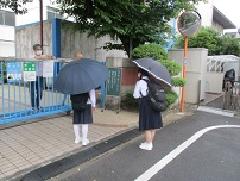 雨の中Bグループが登校します