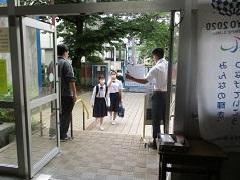 正門で健康チェックをします。