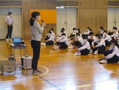 1年生の「いじめ防止プログラム」が始まりました。自分の心を開いて、思っていることを安心して話せる学年を作るためのプログラムです。1回目は全体で、講師の先生から「プログラムのねらい」についての話を聞きました。