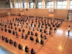校庭で始業式