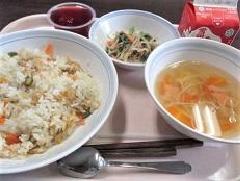今日は七夕です。給食のメニューは、五目ずし、ごま和え、七夕汁、きらきらゼリー。七夕汁には星の形に切った人参の短冊が入っていました。