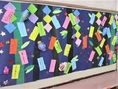 廊下や教室に七夕の飾りつけをしたクラスもありました。短冊にはどんな願い事を書いたのでしょう。