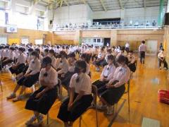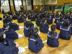 生徒会主催の新入生歓迎会を開催しました。内容は生徒会からの学校紹介と部活動の紹介です。1年生は緊張しながらも上級生の話を関心をもって聞いていました。