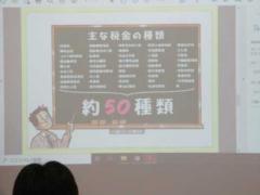 社会科の授業では、東京税理士会蒲田支部の税理士さんに来ていただき、税についての授業をしていただきました。