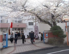 新入生を向かえる玄関の桜