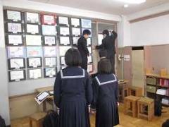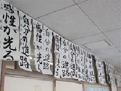 各クラスの廊下に書初めが展示されました。1年生は楷書で「真の友情」、行書で「東雲春光」、2年生は楷書で「方針を語る」、行書で「人生の宝物」、3年生は楷書で「自分の進路」、行書で「感性が光る」という文字を書きました。