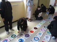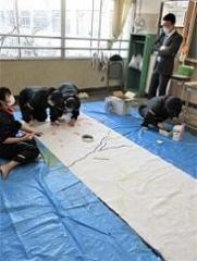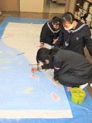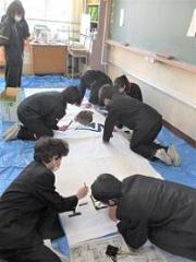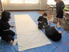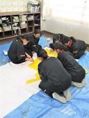 1,2年生は3年生の門出をお祝いする垂れ幕作りを始めました。どんな垂れ幕ができるのか? 完成が楽しみです。