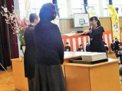 感染症拡大防止のため、保護者は1家庭1名、在校生は生徒会本部役員のみの出席で式典を行いました。卒業生一人一人が、証書授与の時に、担任の先生の呼名に胸を張って堂々と返事をしてくれました。新しい旅立ちにふさわしい立派な式典になりました。