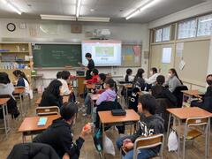 糀谷小学校と北糀谷小学校の皆さんが糀谷中学校の授業を体験しに来ました。中学校は各教科ごとに先生が変わり、それぞれ特色ある授業を展開しています。授業の様子をご覧ください。