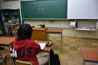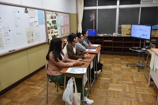 日本語の授業の様子です。今日は、動詞の活用について勉強しました。何回も反復して覚えています。