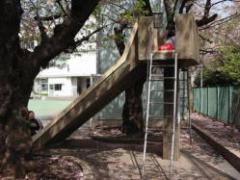 第75期・昭和43年度卒業記念トーテンポール 校庭の桜の木の下に移設