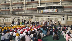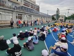 久原小学校の誕生日である、5月1日には全校で校庭に集合しました。