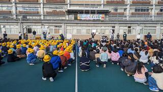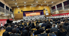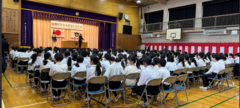 第二部では、5.6年生の児童262人が「開校130周年のよびかけ よろこびの言葉」を披露しました。5、6年生の子どもたちは、力を合わせて練習してきた成果を発揮し、お祝いの気持ちが伝わる合唱や合奏となりました。