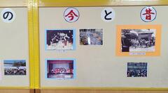 3年4組の外壁掲示は、運動会や音楽祭、作品展などの行事をテーマにこれまでと現在で比較できるように工夫しています。