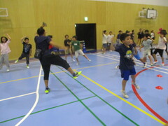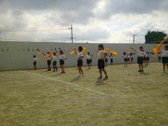 4年生は、難易度の高いステップや動きを取り入れたダンスに挑戦しました。初めは「難しい。」と言う声が多かったこどもたちですが、練習を重ねるにつれ自信をつけることができました。ところどころに掛け声を入れることも皆で考えました。児童鑑賞日には生き生きとした表情で表現することができました。