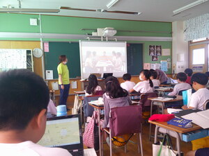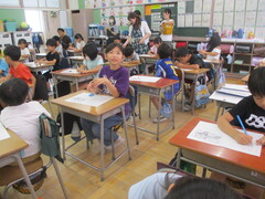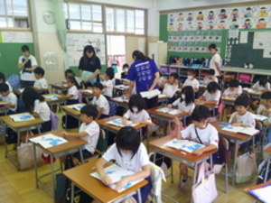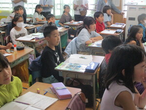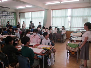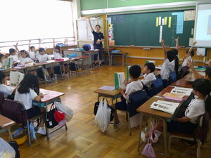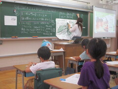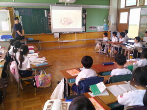 6校時に行われた4年1組の社会の授業です。指導教諭による模範授業として行うため、いろいろな学校から多くの先生たちが来校し、参観しました。