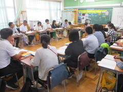 「指導教諭による模範授業」につき、4年1組の子どもたちが下校した後、参加者による協議会が行われました。
