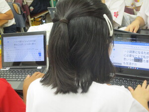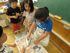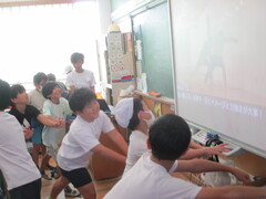 初めにこのアプリでできることや作成するうえで気を付けることの説明を受け、昨年度の5年生(現6年生)がつくったアニメーションの見本を見ました。さっそくやってみたいことがいろいろと湧き上がってくるようでした。