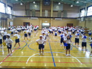 今日の体育館での参加は1・4・6年生。久しぶりの朝会ですが、順調に集合することができました。