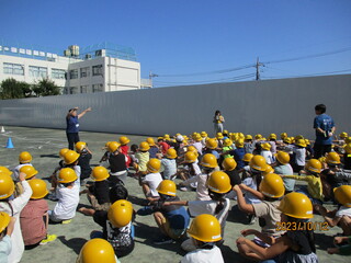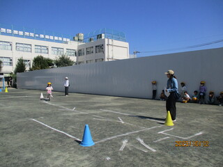 お話を聞いた後は、実際に模擬道路を自転車で走りました。安全確認をしっかりとして自転車に乗る子どもたちの様子が見られました。