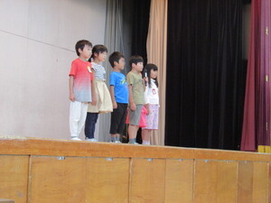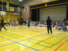 今日の全校朝会は、2・4・6年生が体育館で対面参加です。
