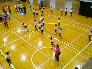 体育館をふらっとのぞいてみると、2年生が学年全体で練習中でした。みんな、とても真剣です。