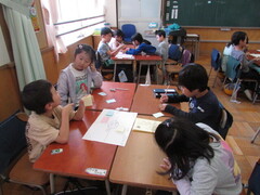 前時に、子供たちは麦についてテーマ別に調べたことをグループで発表しました。今日はその発表をより良くパワーアップするためにどうしたらよいかを、グループでアドバイスをしあって検討します。子供たちの活発な意見が飛び交っていました。