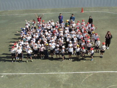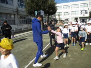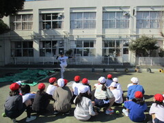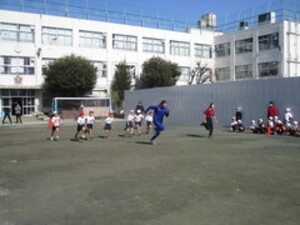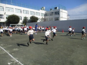 外での体育はかなり寒いですが、1年生はとても元気!